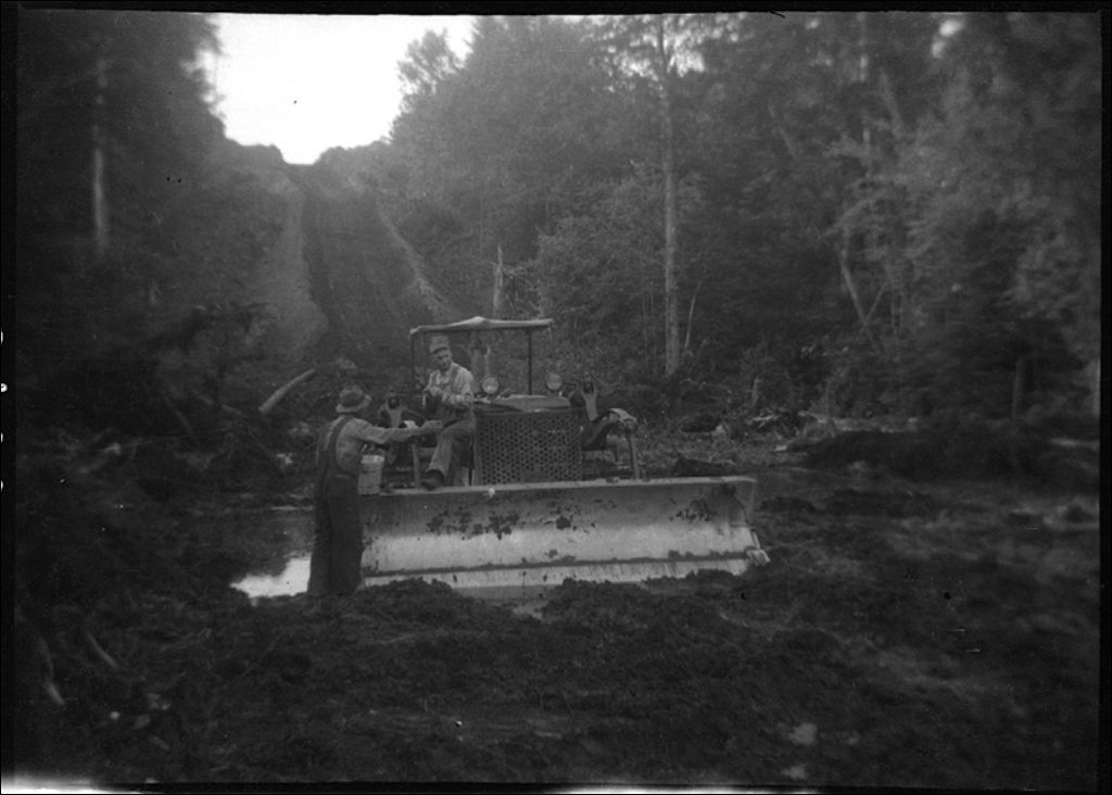 Ouverture de la route à Saint-Isidore-d'Auckland, Compton, 1942, Archives nationales à Québec, Fonds Ministère de la Culture et des Communications, (03Q,E6,S7,SS1,D2,P8788), Isidore Hudon.