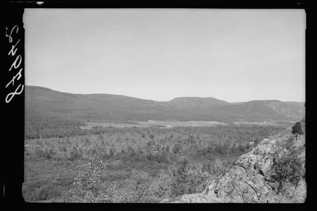 Dans l¿outil de recherche original, la pièce est décrite ainsi : In the middle distance the virtually flat sand plain adjacent to Lac Deschenes, exfoliated Augen gneiss in foreground concordant summits pf Hills underlain by granite gneiss on the skyline, Chauveau twp, Charlevoix county