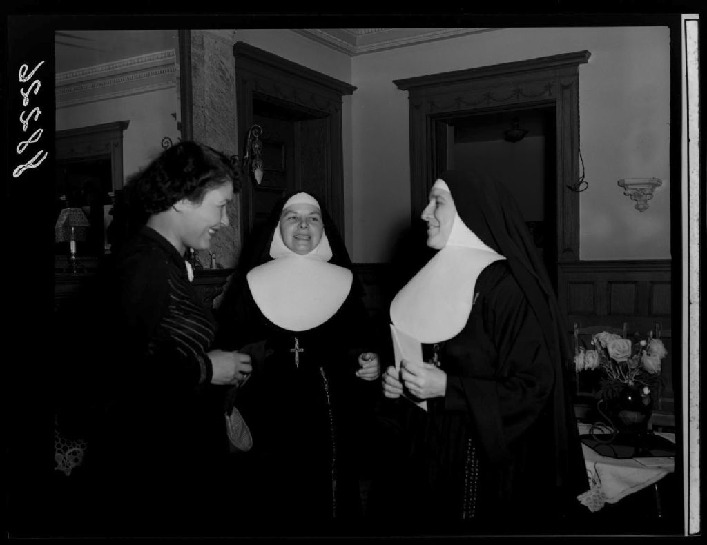 Deux religieuses et mademoiselle Chamsi Mossaheb de l'Iran à 91 Chemin Sainte-Foy, Québec