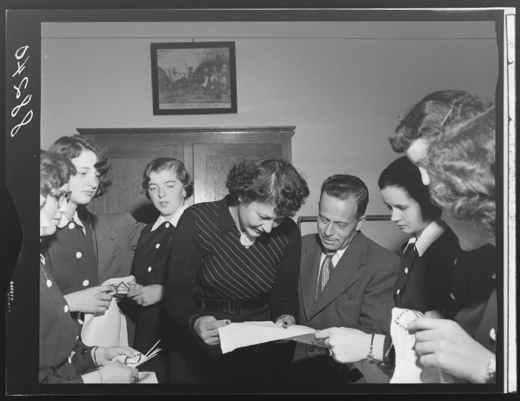 Cinq élèves, monsieur Noël et mademoiselle Chamsi Mossaheb de l'Iran à l'École supérieure de Loretteville