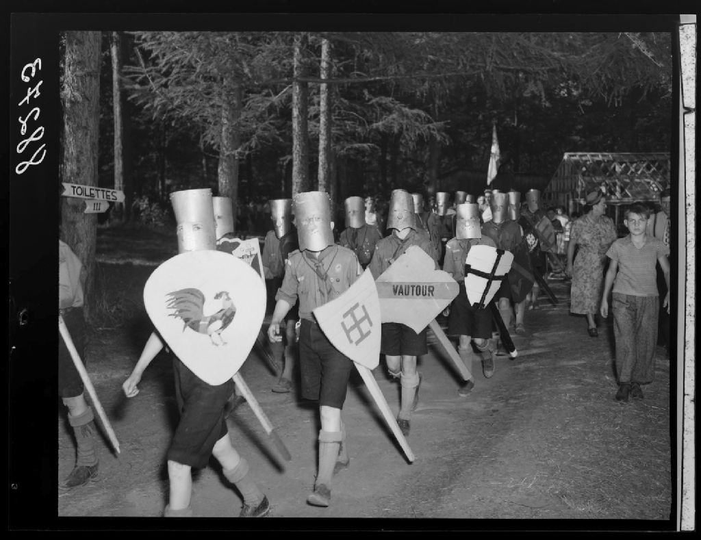 Fédération des scouts catholiques à la jamborée à Vaudreuil, 1951, Archives nationales à Québec, Fonds Ministère de la Culture et des Communications, (03Q,E6,S7,SS1,D2,P88273), Neuville Bazin.