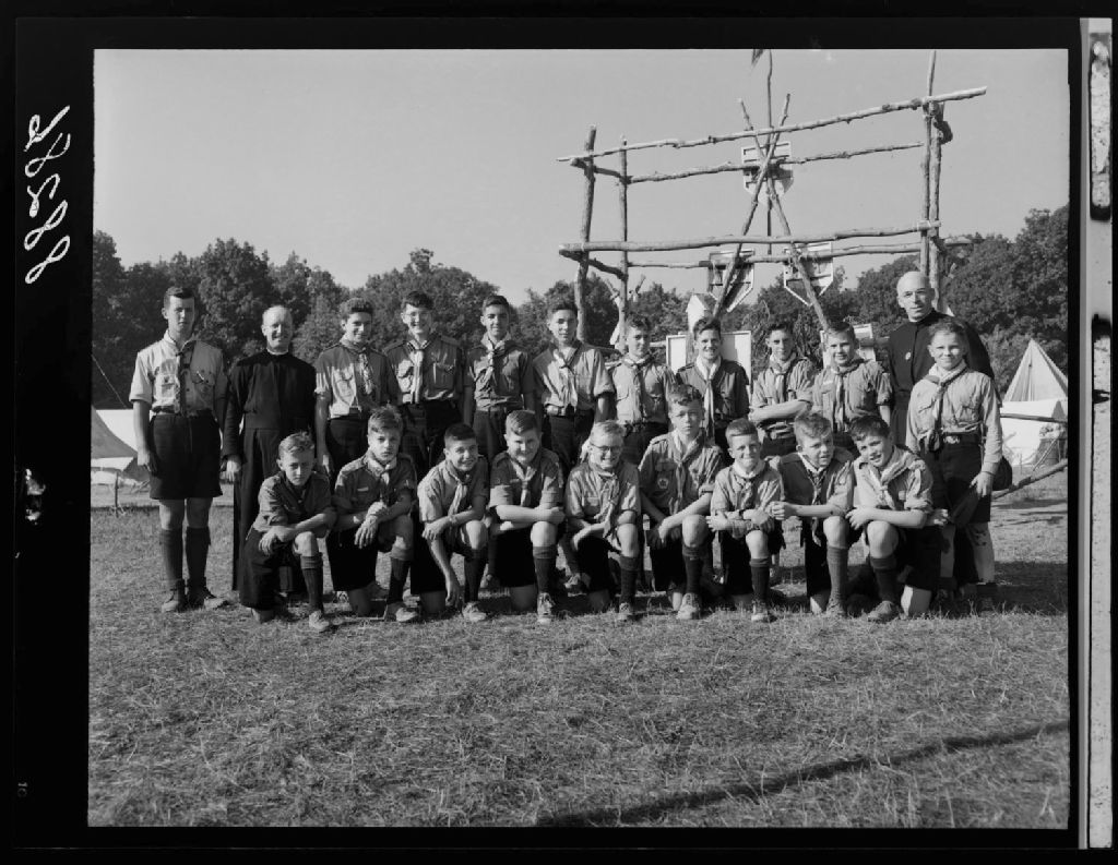 Fédération des scouts catholiques à la jamborée à Vaudreuil, 1951, Archives nationales à Québec, Fonds Ministère de la Culture et des Communications, (03Q,E6,S7,SS1,D2,P88286), Neuville Bazin.