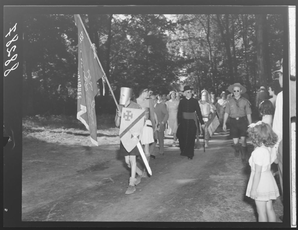 Fédération des scouts catholiques à la jamborée à Vaudreuil, 1951, Archives nationales à Québec, Fonds Ministère de la Culture et des Communications, (03Q,E6,S7,SS1,D2,P88287), Neuville Bazin.