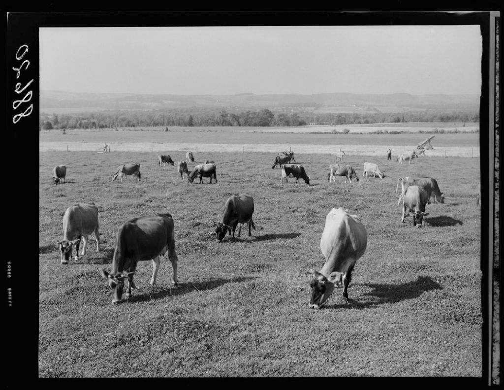 Troupeau Jersey chez Ed. M. Detchon. Massawippi, comté Stanstead., 1951, Archives nationales à Québec, Fonds Ministère de la Culture et des Communications, (03Q,E6,S7,SS1,D2,P88620), Omer Beaudoin.