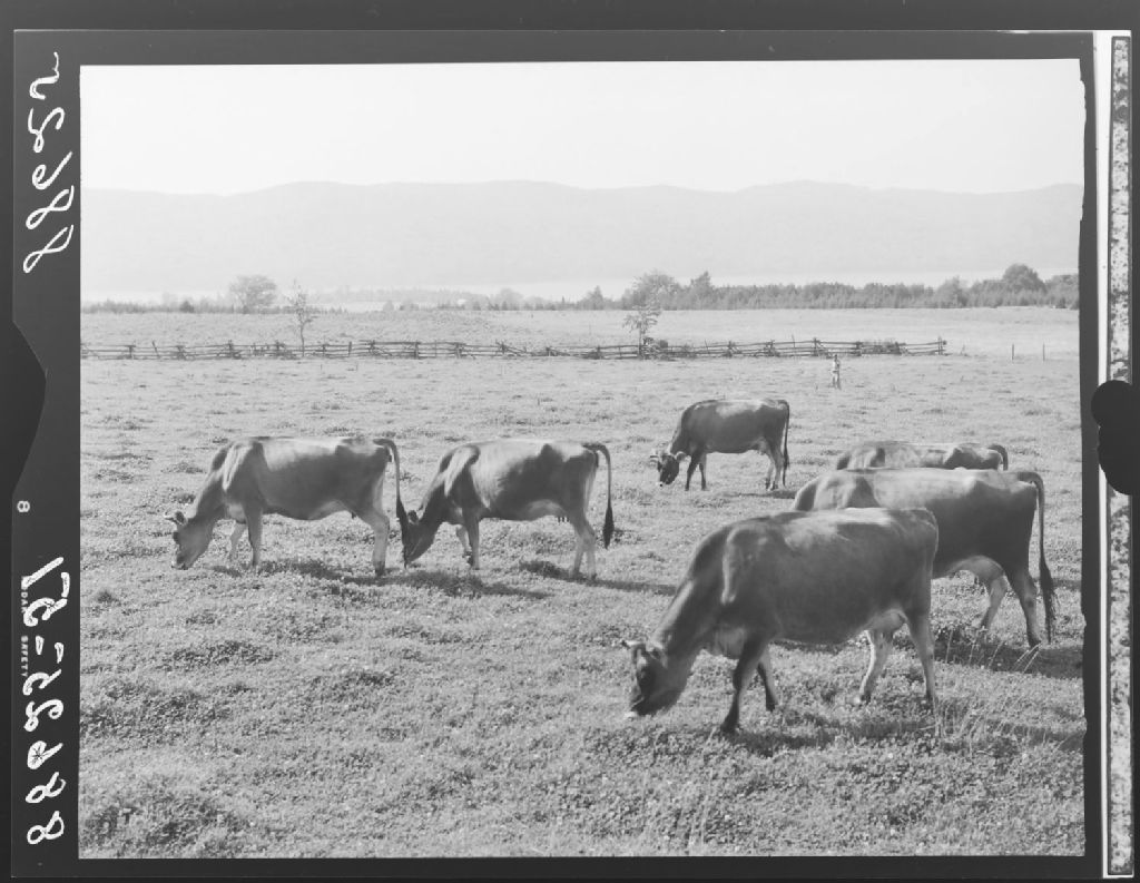 Troupeau Jersey chez Ed. M. Detchon. Massawippi, comté Stanstead., 1951, Archives nationales à Québec, Fonds Ministère de la Culture et des Communications, (03Q,E6,S7,SS1,D2,P88625), Omer Beaudoin.