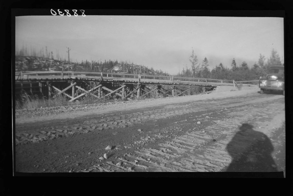 Ponceau en bois de 106 par 89 pieds au dessus de la dalle du Quebec North Shore & Paper Co. à Baie-Comeau