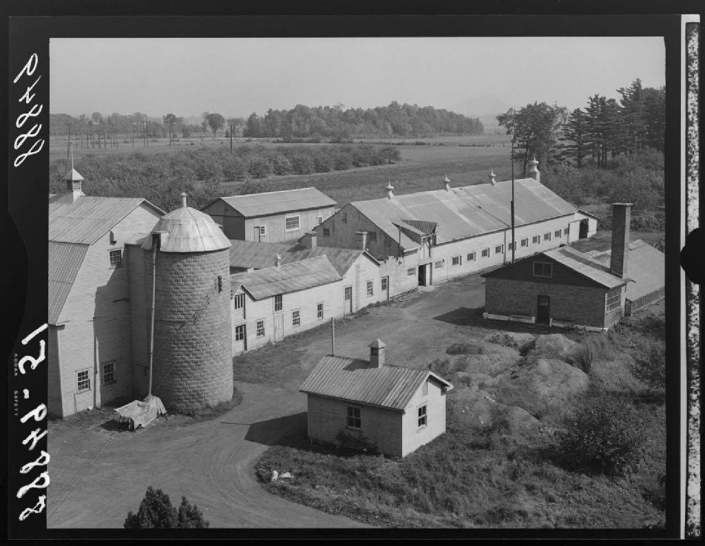 Vue des constructions à la ferme des Révérends Frères maristes. Iberville., 1951, Archives nationales à Québec, Fonds Ministère de la Culture et des Communications, (03Q,E6,S7,SS1,D2,P88849), Omer Beaudoin.