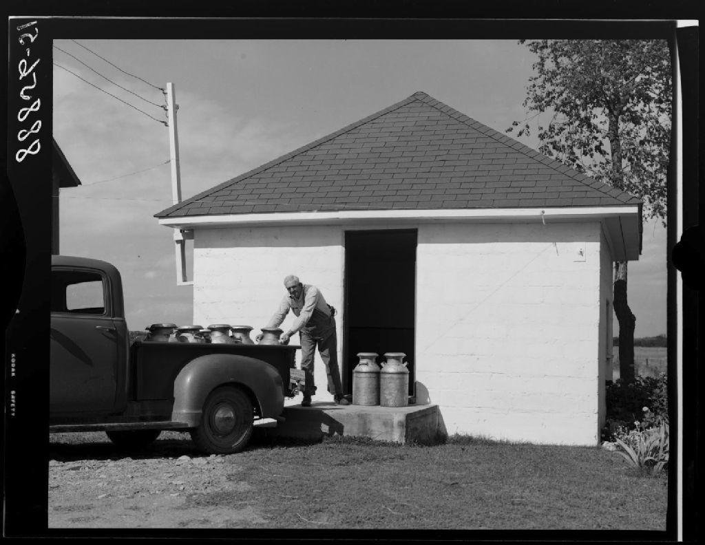 Laiterie chez Léon Guertin. Granby, comté Shefford., 1951, Archives nationales à Québec, Fonds Ministère de la Culture et des Communications, (03Q,E6,S7,SS1,D2,P88856), Omer Beaudoin.
