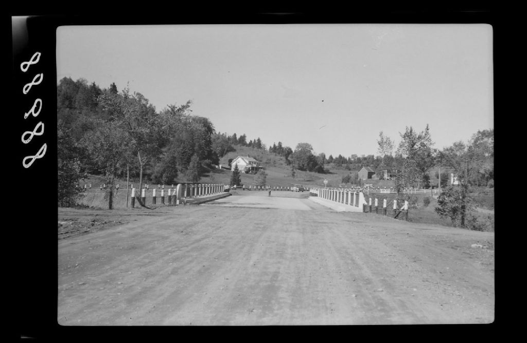 Pont sur la route 50 traversant la rivière Tomifobia à Ayer's Cliff. Stanstead, 1951, Archives nationales à Québec, Fonds Ministère de la Culture et des Communications, (03Q,E6,S7,SS1,D2,P88988), J. Émile Chevalier.