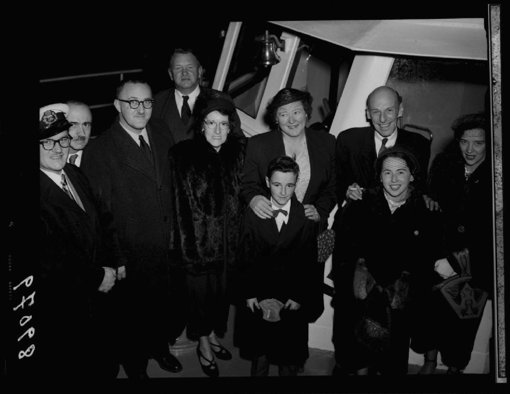 Lancement du navire "Feu Follet" service de la protection des fôrets. Saint-Laurent, île d'Orléans, 1951, Archives nationales à Québec, Fonds Ministère de la Culture et des Communications, (03Q,E6,S7,SS1,D2,P89079), J.W.Michaud.
