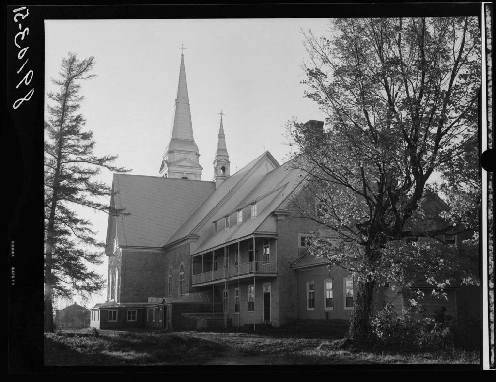 L'Église paroissiale (arrière plan), Sainte-Claire, comté Dorchester