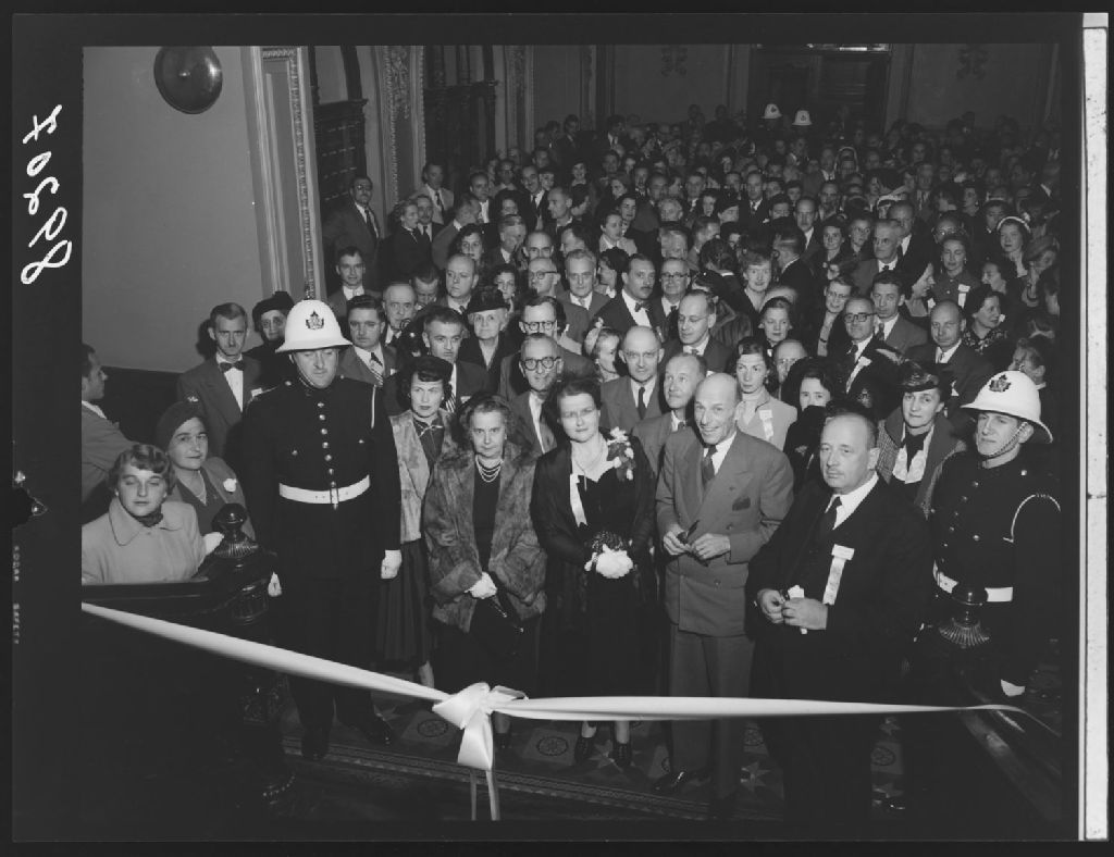 Ouverture de l'exposition d'art et d'artisanat des employés civils au bas de l'escalier du café du Parlement de Québec