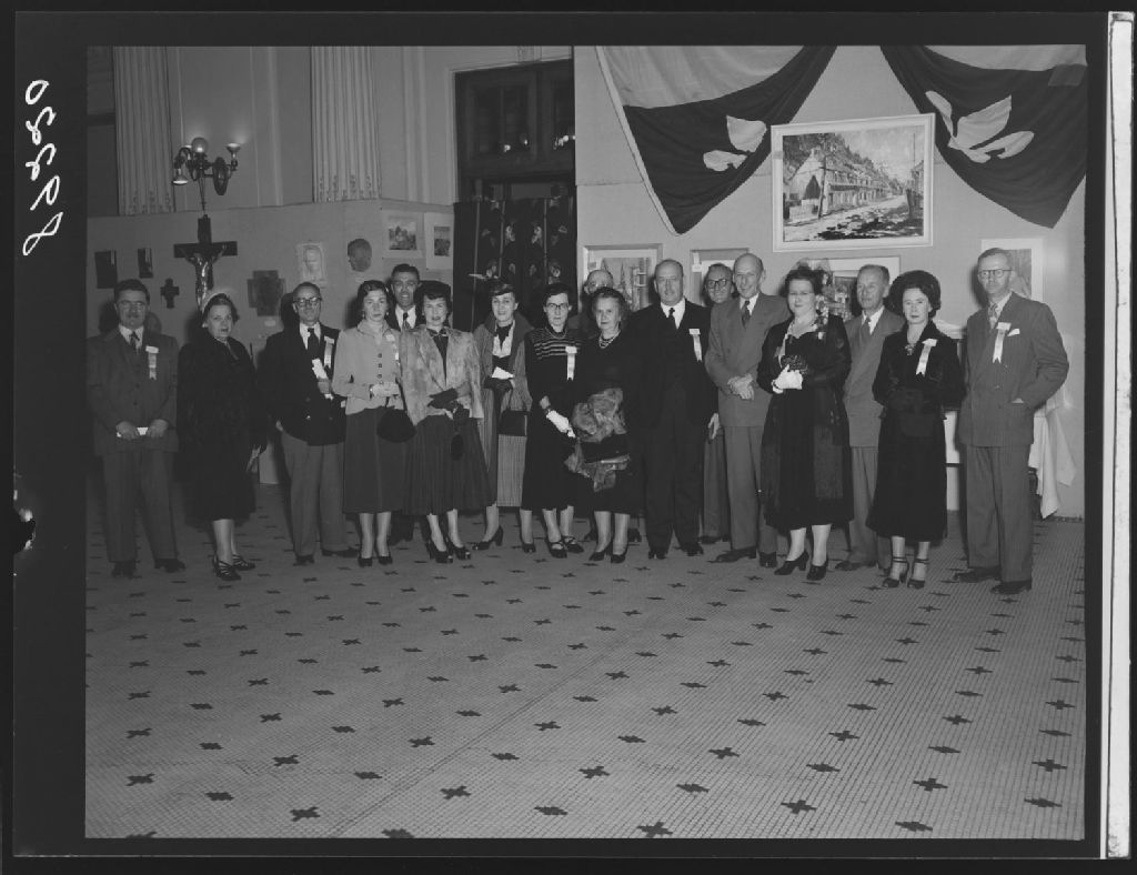 Les membres du Comité d'exposition et quelques invités lors de l'ouverture au café du Parlement