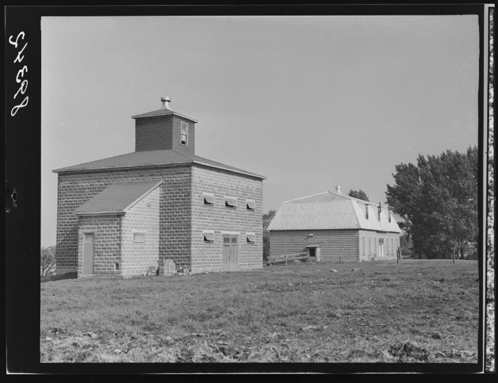 Grainerie et porcherie chez les Frères de Saint-Gabriel. Saint-Bruno., 1951, Archives nationales à Québec, Fonds Ministère de la Culture et des Communications, (03Q,E6,S7,SS1,D2,P89342), Omer Beaudoin.