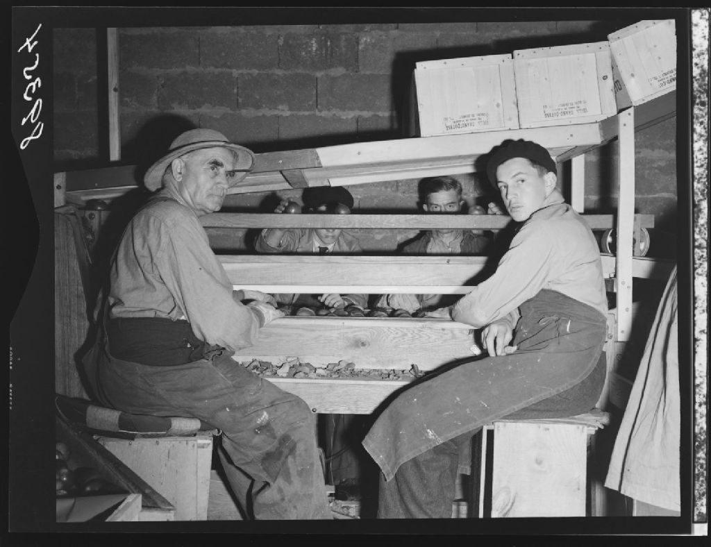 Classification des pommes chez les Frères de Saint-Gabriel. Saint-Bruno., 1951, Archives nationales à Québec, Fonds Ministère de la Culture et des Communications, (03Q,E6,S7,SS1,D2,P89354), Omer Beaudoin.
