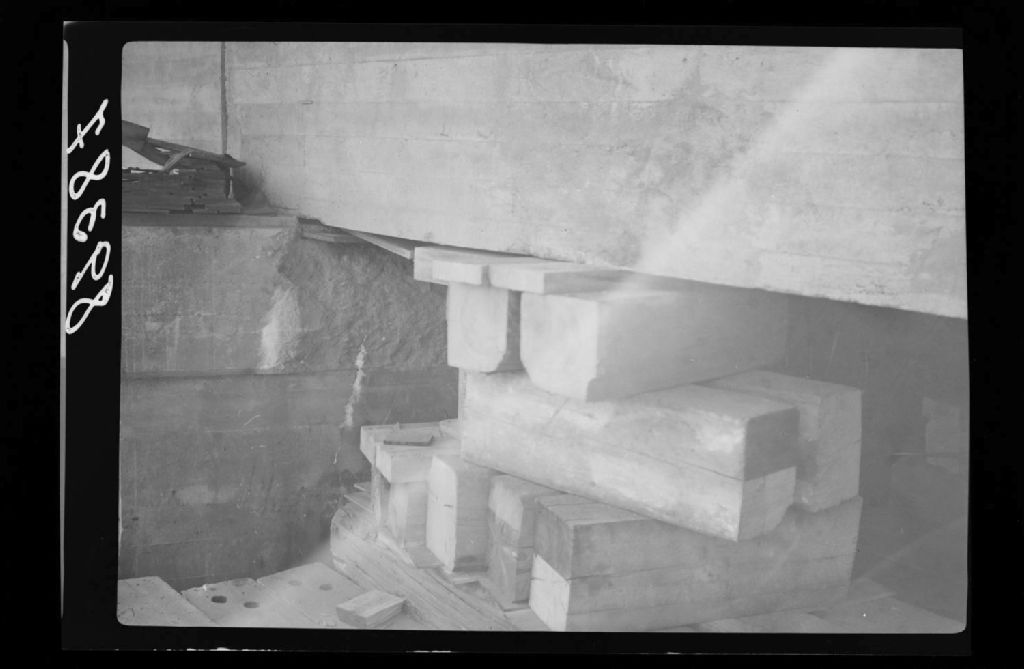 Pont Prouty Crossing traversant la rivière Coaticook entre Canton Adcot et Waterville. La travée à été soulevée, on remarque le béton de la corniche qui est tombé, 1951, Archives nationales à Québec, Fonds Ministère de la Culture et des Communications, (03Q,E6,S7,SS1,D2,P89387), J. Émile Chevalier.