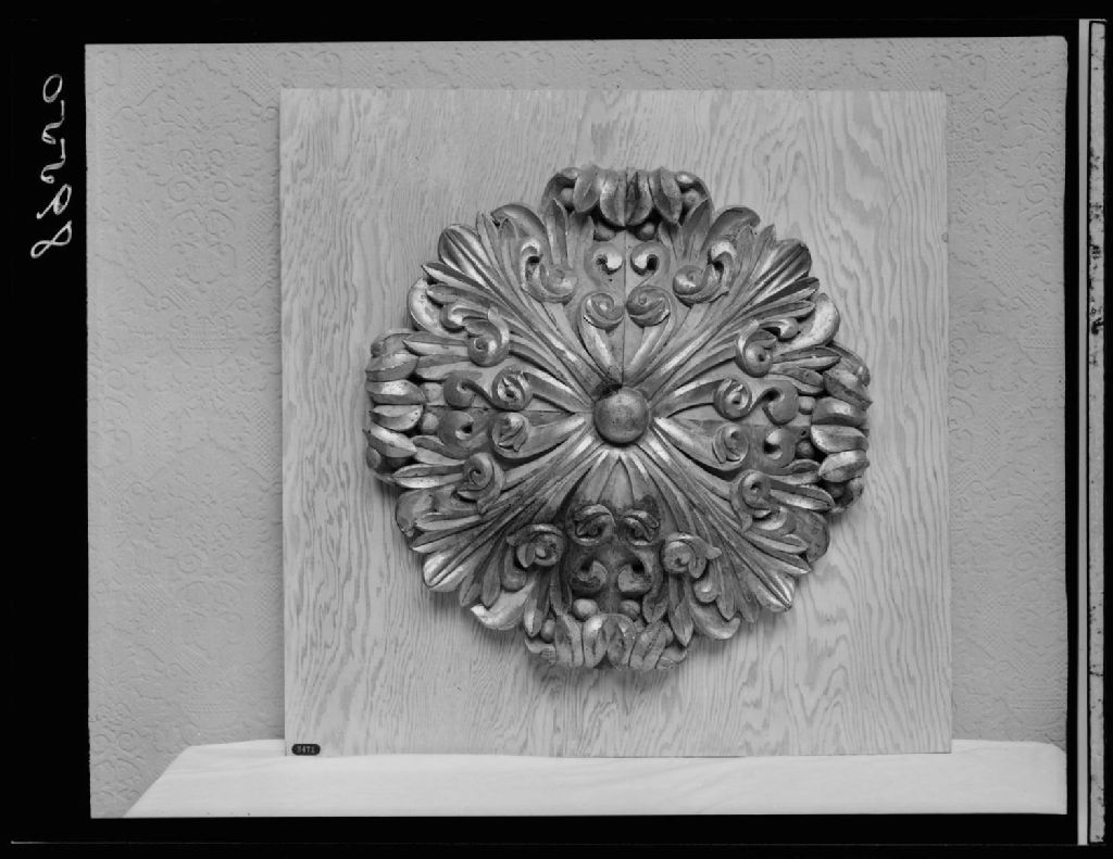 Rosace sculptée en pin à motifs de feuilles d'acanthe provenant de l'église Sainte-Elizabeth. Musée du Québec