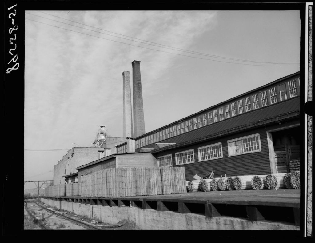 Usine principale aux Industries Baribeau Inc. Vue partielle de la bouilloire, de la mécanique et de la manufacture des Industries Baribeau Inc. Sise le long d'une voie d'évitement du C.N.R. À proximité des quais donnant sur le fleuve Saint-Laurent. Les usines et entrepôts occupent une superficie d'au-déla de 200000 pieds de plancher, et en font la plus importante manufacture d'articles en bois du Canada, usine principale aux Industries Baribeau Inc. à Lévis, 1951, Archives nationales à Québec, Fonds Ministère de la Culture et des Communications, (03Q,E6,S7,SS1,D2,P89558), Neuville Bazin.