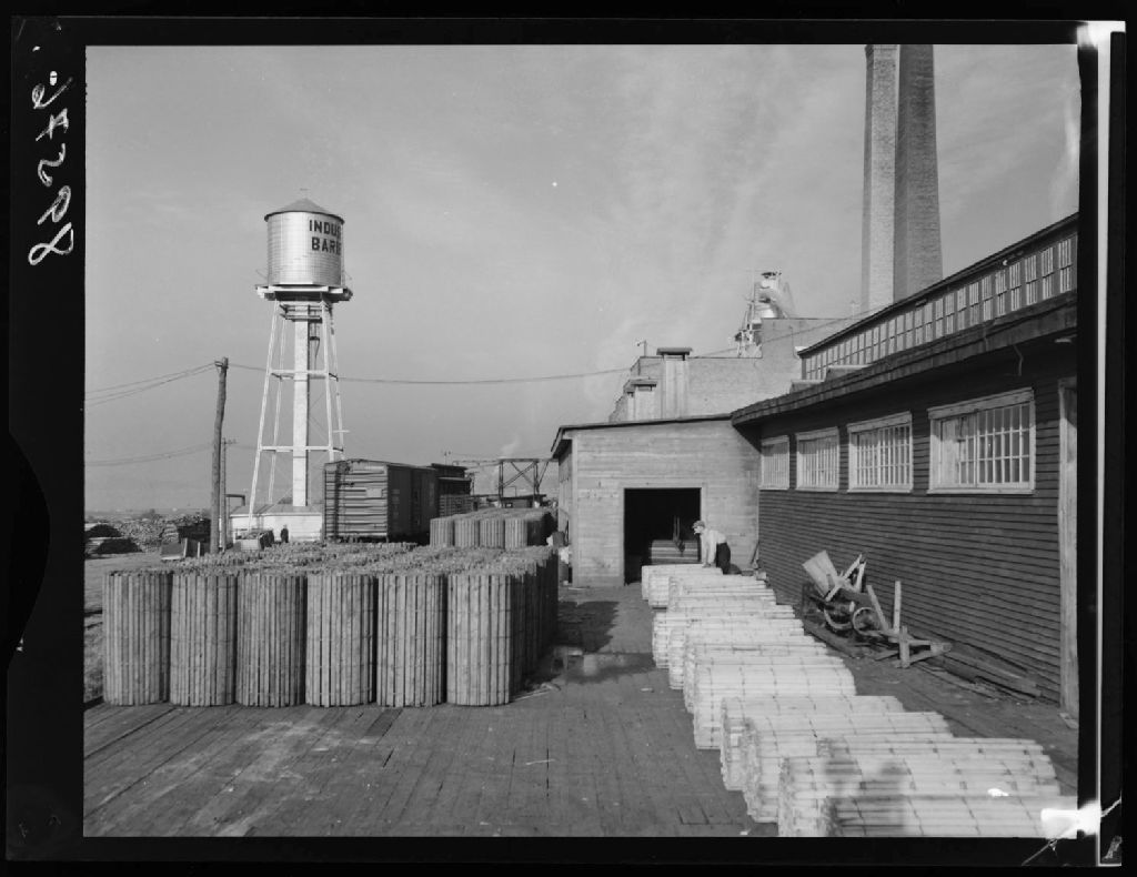 Clôtures à neige prêtes pour l'expédition, Industries Baribeau Inc., Lévis, 1951, Archives nationales à Québec, Fonds Ministère de la Culture et des Communications, (03Q,E6,S7,SS1,D2,P89576), Neuville Bazin.