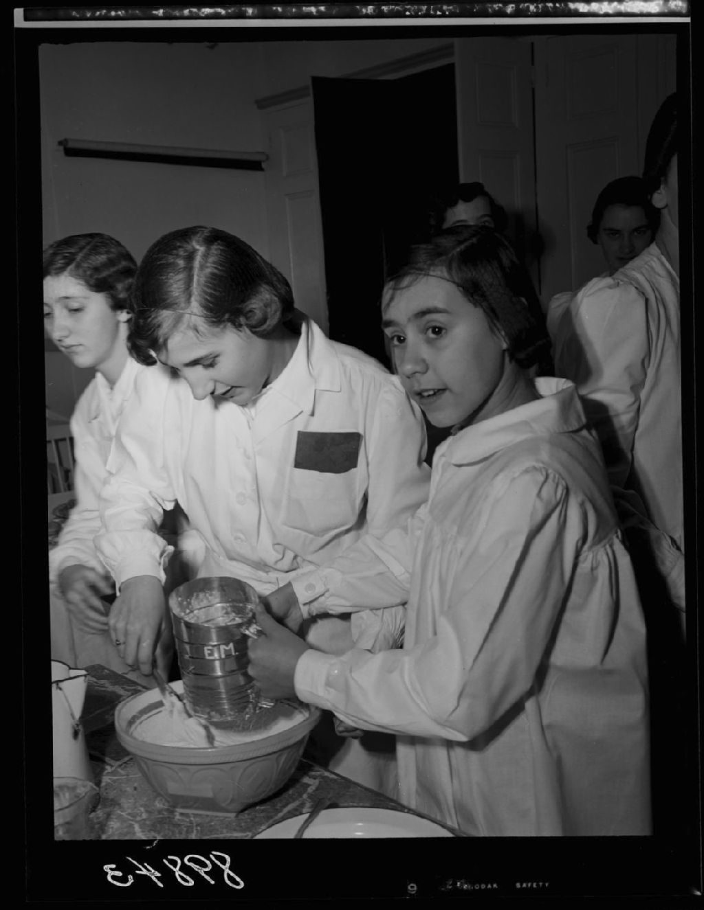 Deux élèves sassant de la farine, école moyenne familiale, Gros Pin