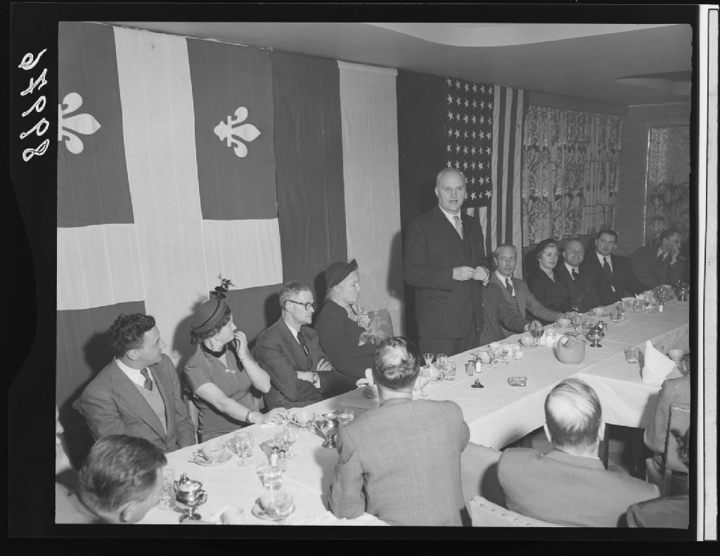 Au restaurant Marino à l'occasion d'un discours prononcé par Monsieur Stevenster, consul général des Pays-Bas à un banquet de la corporation des agronomes de Québec, 1951, Archives nationales à Québec, Fonds Ministère de la Culture et des Communications, (03Q,E6,S7,SS1,D2,P89976), Neuville Bazin.