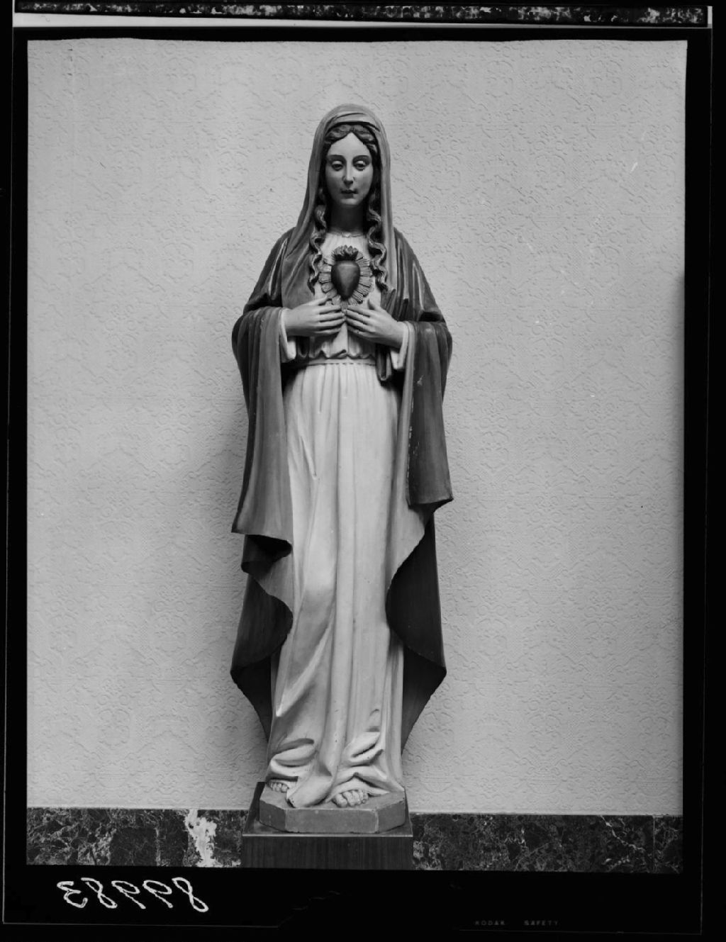 Statue Sacré-Coeur de Marie en couleur. Hauteur de 61 pouces et largeur de 20 pouces. Musée du Québec