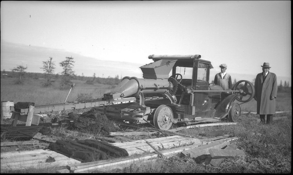 Machin à tourbe combustible fabriquée par Desjardins, Saint-Charles, 1942, Archives nationales à Québec, Fonds Ministère de la Culture et des Communications, (03Q,E6,S7,SS1,D2,P9120), H. Girard.