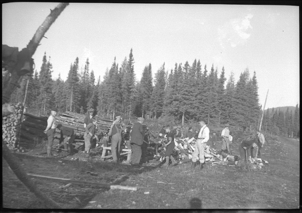 Équipe de travail au bois de chauffage, parc des Laurentides