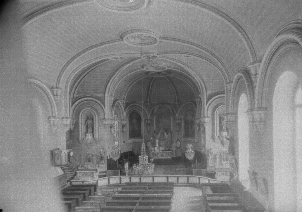 Saint-Laurent, Montmorency - Église - Intérieur, Vers 1950-1956, Archives nationales à Québec, Fonds ministère de la Culture et des Communications, (03Q,E6,S8,SS1,SSS1149,D7573), Edgar Gariépy, Jean-Paul Morisset, M. Prévotal.