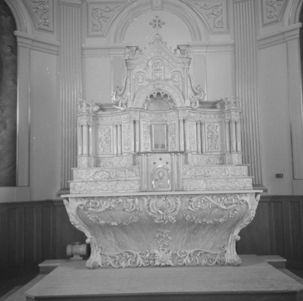 Saint-Magloire, Bellechasse - Église, Maître-autel en bois, oeuvre de François-Noël Levasseur et Jean Baptiste-Antoine Levasseur, 1957, Archives nationales à Québec, Fonds ministère de la Culture et des Communications, (03Q,E6,S8,SS1,SSS115,D438), Gérard Morisset.