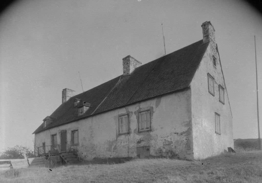 Saint-Édouard, Napierville - Maisons - Ancien manoir de François Languedoc - Détail de la muraille et de l'écurie de forme anglo-normande, 1947, Archives nationales à Québec, Fonds ministère de la Culture et des Communications, (03Q,E6,S8,SS1,SSS1160,D7729), Gérard Morisset.