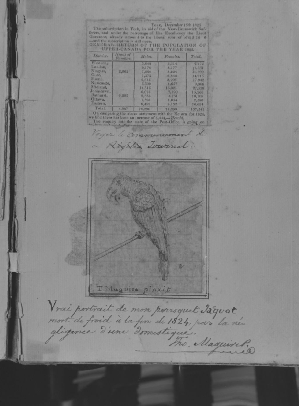 Saint-Michel, Bellechasse - Photo du dessin du perroquet de l'abbé Thomas Maguire , vers 1820