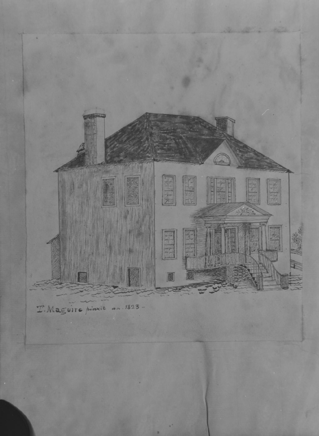Saint-Michel, Bellechasse -Photo d'un dessin à la plume et au lavis représentant l'ancienne maison d'école en 1823