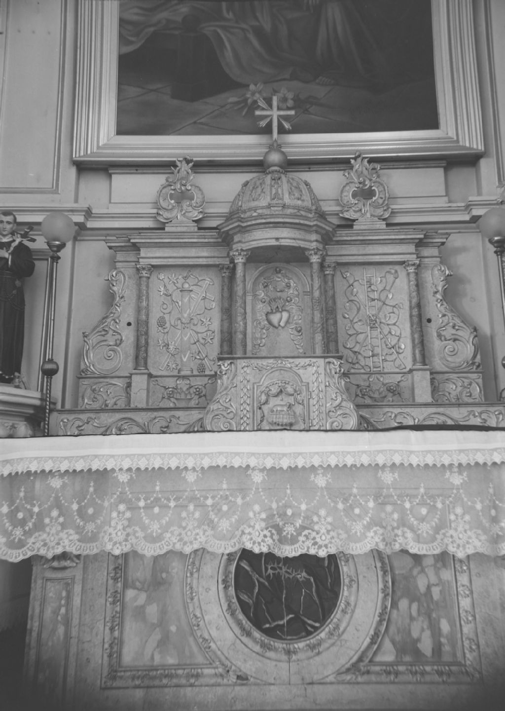 Saint-Cuthbert, Berthier - Église - Tabernacle de l'autel latéral de droite fait en 1807 par Louis Quévillon, 1939, Archives nationales à Québec, Fonds ministère de la Culture et des Communications, (03Q,E6,S8,SS1,SSS145,D647), Jules Bazin.