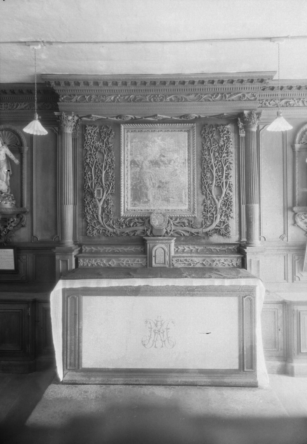 Québec, Québec - Séminaire de Québec - Chapelle de monseigneur Briand - Retable, 1945-1954, Archives nationales à Québec, Fonds ministère de la Culture et des Communications, (03Q,E6,S8,SS1,SSS1656,D13733), Edgar Gariépy, Gérard Morisset, Jean-Paul Morisset.