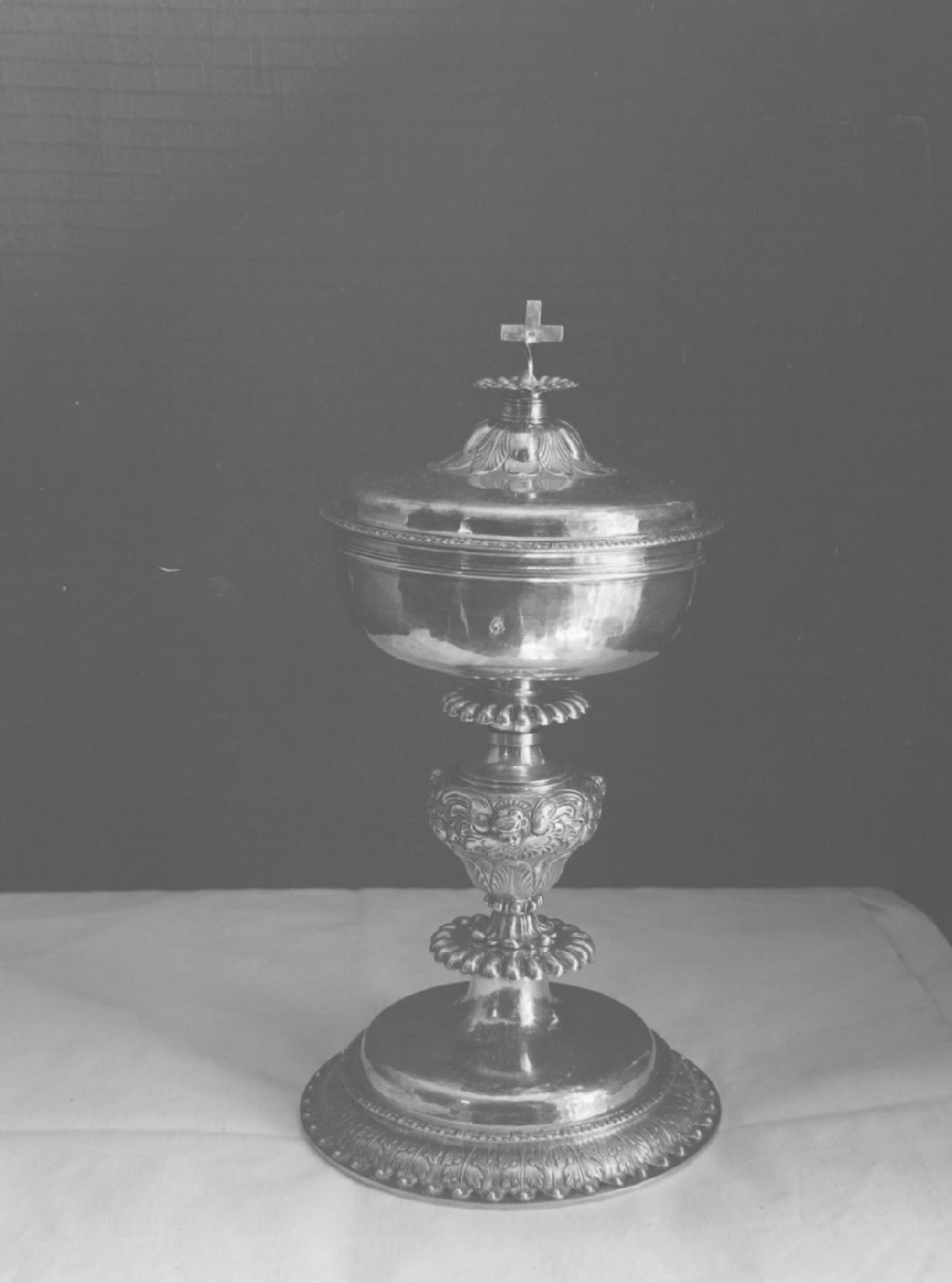 Boucherville, Chambly - Église - Ciboire en argent massif, oeuvre de Paul Lambert vers 1745, Vers 1950, Archives nationales à Québec, Fonds ministère de la Culture et des Communications, (03Q,E6,S8,SS1,SSS176,D747), Pas de mention de responsabilité.
