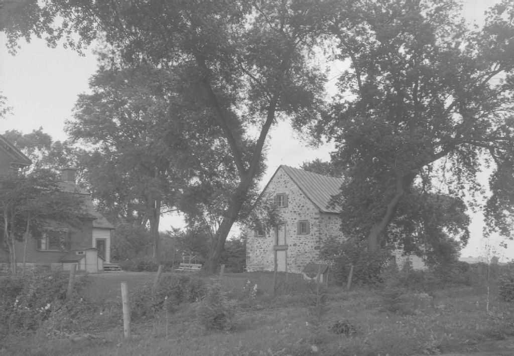 Boucherville, Chambly - Maisons - Une remise en pierre, dépendance du manoir de Pierre Boucher, Vers 1948-1950, Archives nationales à Québec, Fonds ministère de la Culture et des Communications, (03Q,E6,S8,SS1,SSS177,D768), Edgar Gariépy, Gérard Morisset.