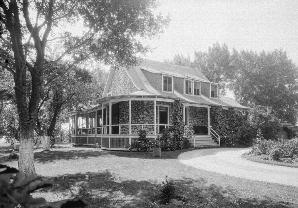 - Vue éloignée de la façade et du profil gauche de la maison Forbes