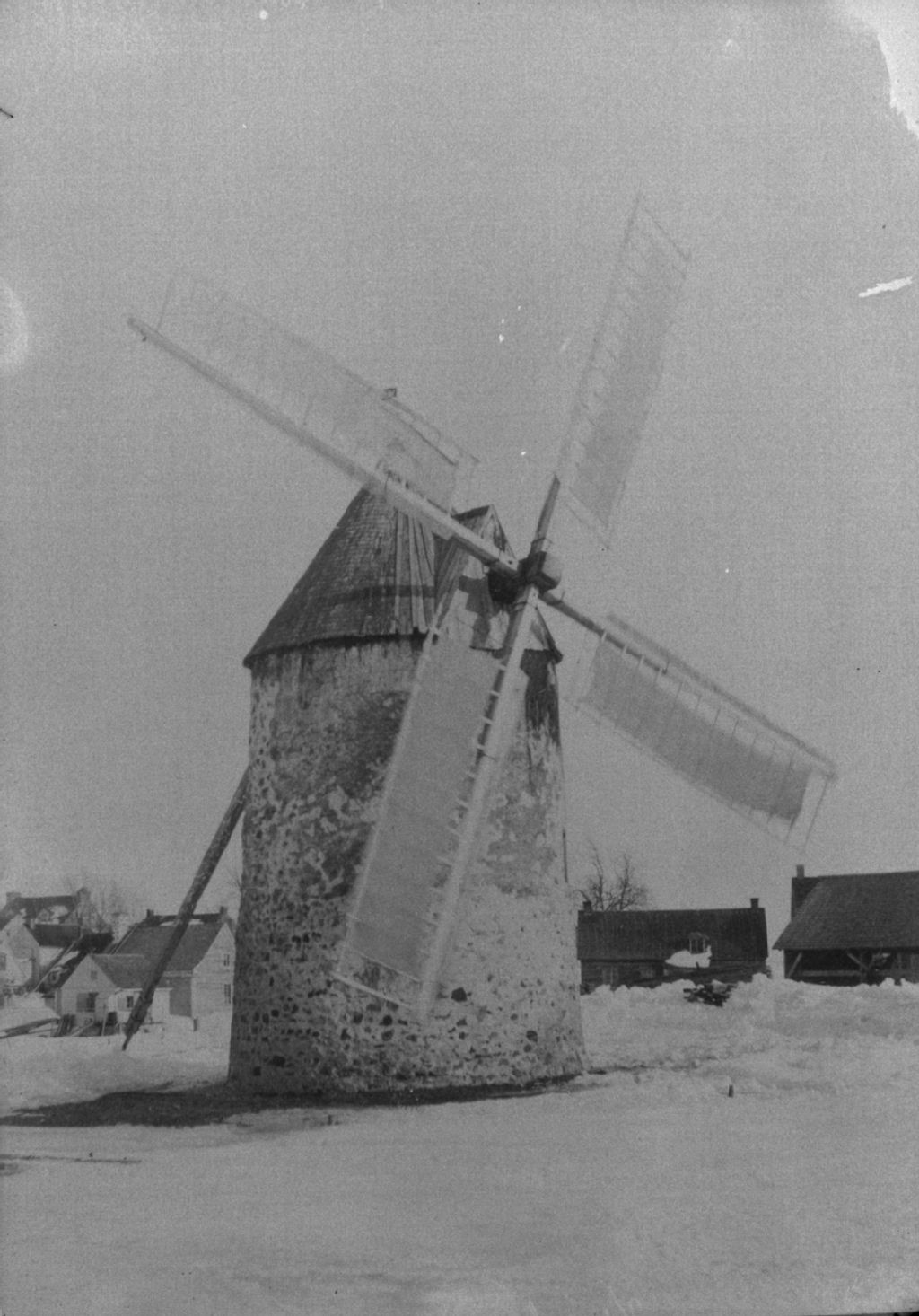 Vues du moulin à vent situé en plein champs sur la terre de Monsieur Joseph Collette, construit en 1856 par Monsieur Lucien Collette grand-père de Joseph Collette