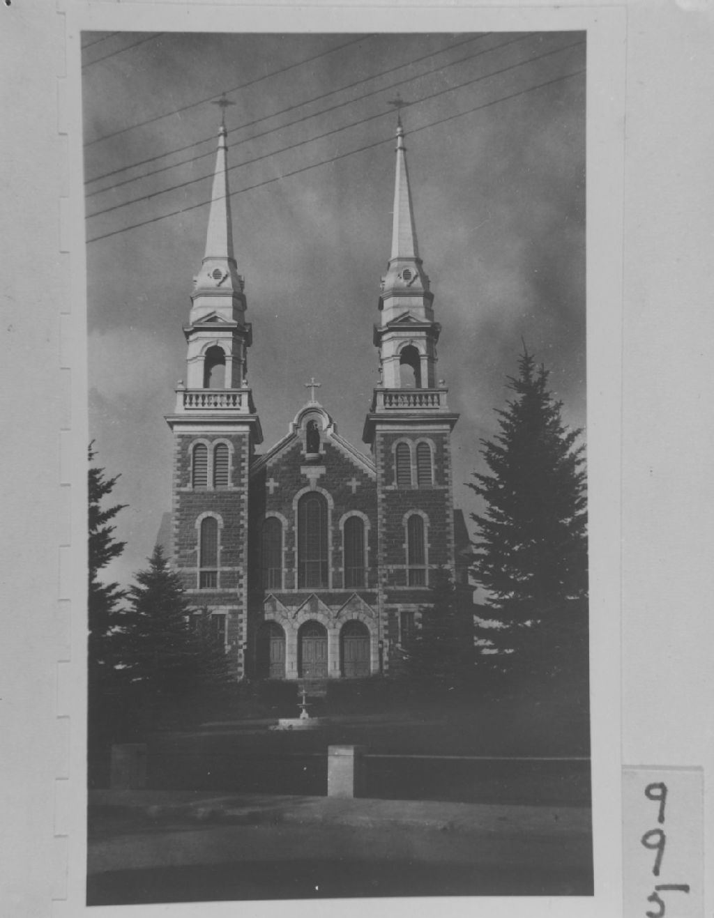 Saint-Adelphe, Champlain - Église - Façade, 1950-1954, Archives nationales à Québec, Fonds Ministère de la Culture et des Communications, (03Q,E6,S8,SS1,SSS234,D995), Noël Comeau.