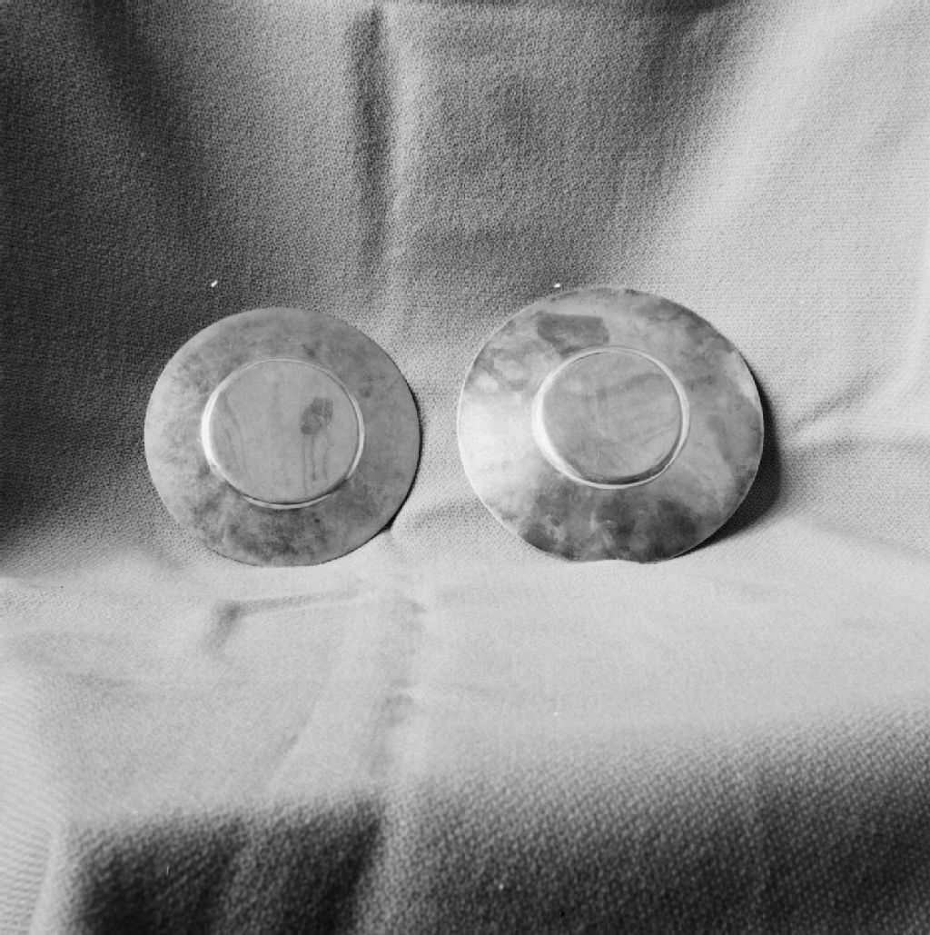 Sainte-Agnès, Charlevoix-Est - Église - Patènes en argent doré, 1961, Archives nationales à Québec, Fonds ministère de la Culture et des Communications, (03Q,E6,S8,SS1,SSS263,D1106), Gérard Morisset.