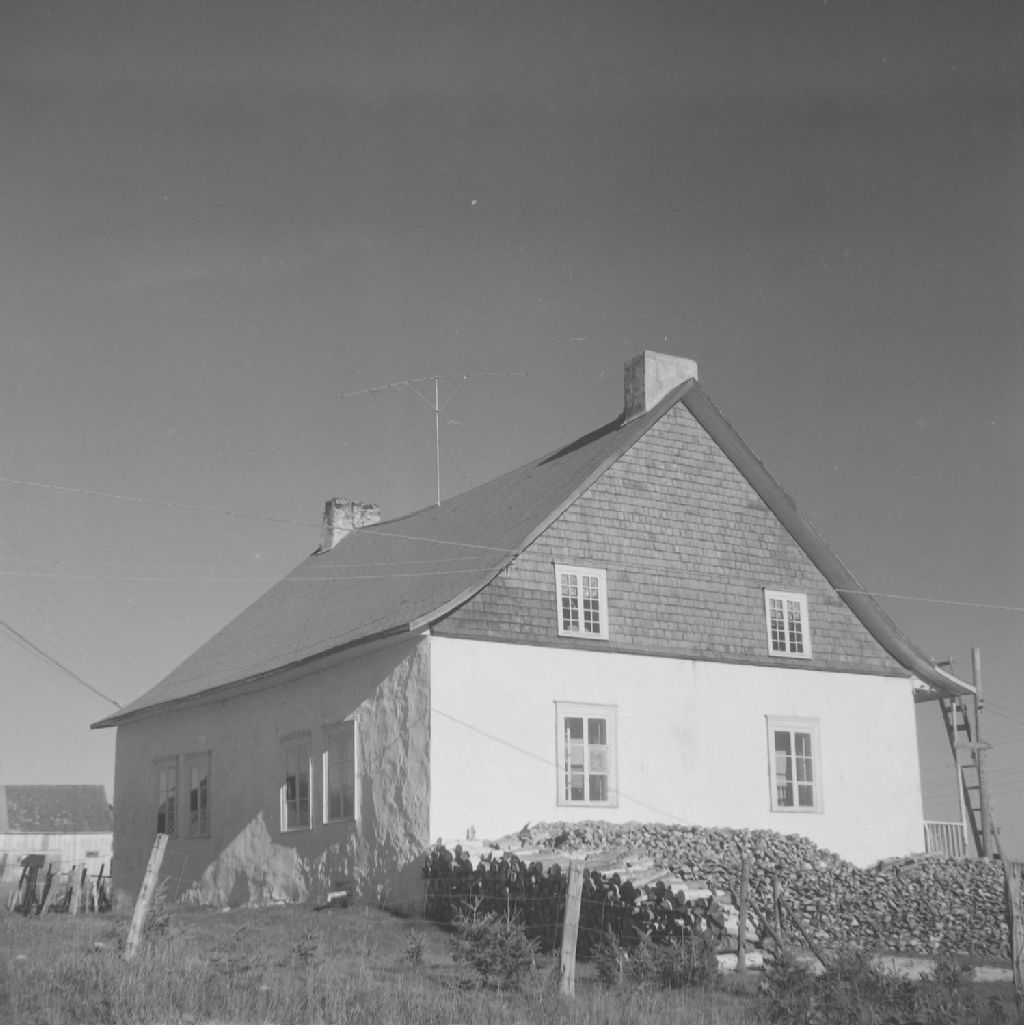 Les Éboulements, Charlevoix-Ouest - Maisons - Habitation sise sur la « grand-route », à l'angle du chemin de Saint-Joseph-de-la-Rive., 1957, Archives nationales à Québec, Fonds ministère de la Culture et des Communications, (03Q,E6,S8,SS1,SSS288,D1321), Jean-Paul Morisset.