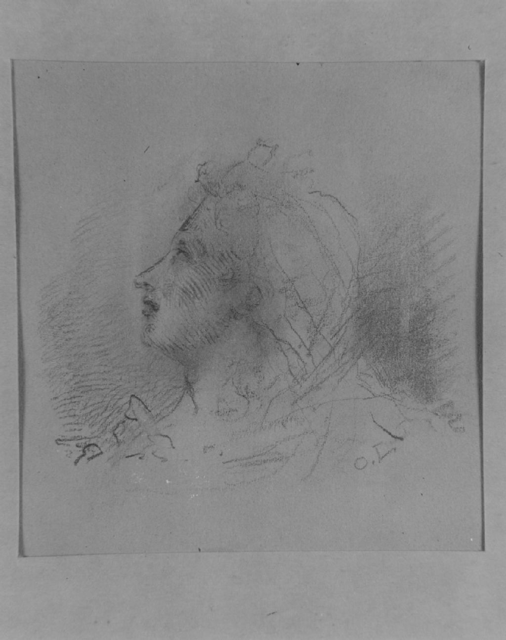 Chicoutimi, Chicoutimi - Collection René Bergeron - Tête de femme de profil à gauche, oeuvre au fusain d'Ozias Leduc