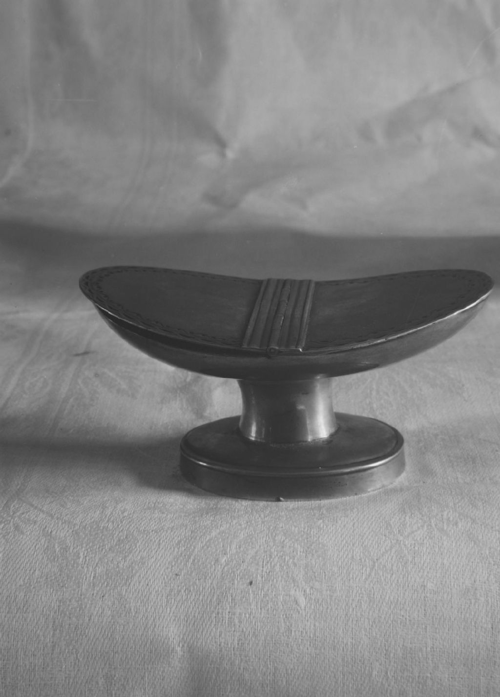 Oka, Deux-Montagnes - Église - Navette en argent sans poinçon, oeuvre de Joseph Schindler, 1945, Archives nationales à Québec, Fonds ministère de la Culture et des Communications, (03Q,E6,S8,SS1,SSS355,D1524), Gérard Morisset.
