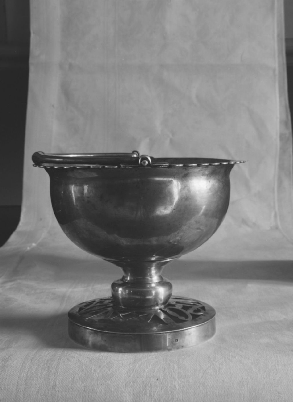 Oka, Deux-Montagnes - Église - Bénitier en argent fait par Joseph Schindler entre 1781 et 1792, 1945, Archives nationales à Québec, Fonds ministère de la Culture et des Communications, (03Q,E6,S8,SS1,SSS355,D1525), Gérard Morisset.