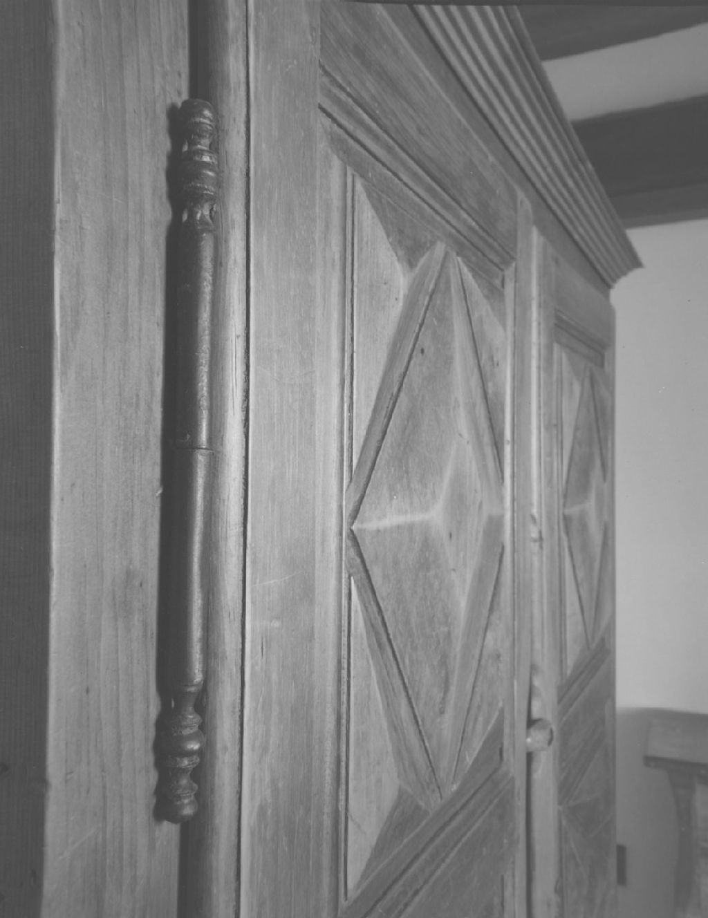Sainte-Scholastique, Deux-Montagnes - Collection Roger Burger - Armoire à deux vantaux ornés de pointes à diamants, Vers 1950, Archives nationales à Québec, Fonds ministère de la Culture et des Communications, (03Q,E6,S8,SS1,SSS372,D1578), Jean-Paul Morisset.