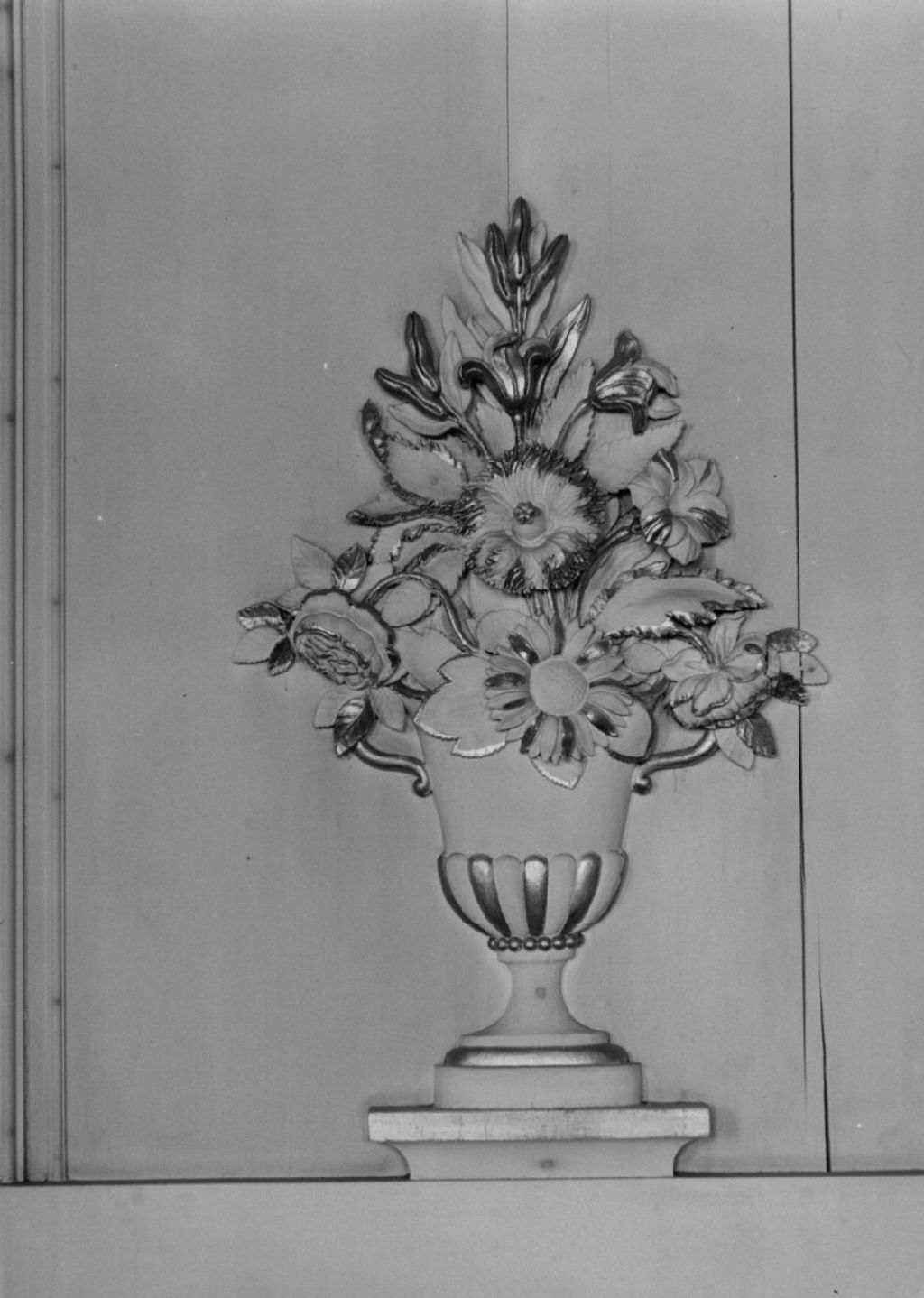 Saint-Anselme, Dorchester - Église - Vase à fleurs en bois sculpté, oeuvre d'André Paquet entre 1849 et 1860, 1944, Archives nationales à Québec, Fonds ministère de la Culture et des Communications, (03Q,E6,S8,SS1,SSS392,D1666), Gérard Morisset.