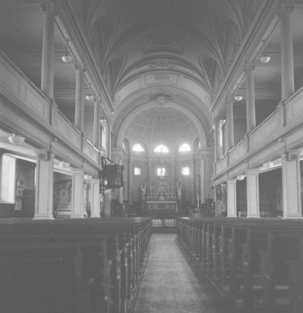 Saint-Léon-de-Standon, Dorchester - Église - Intérieur en plâtre fait en 1923 d'après les plans de Pierre Lévesque, [1954], Archives nationales à Québec, Fonds ministère de la Culture et des Communications, (03Q,E6,S8,SS1,SSS405,D1736), Gérard Morisset.
