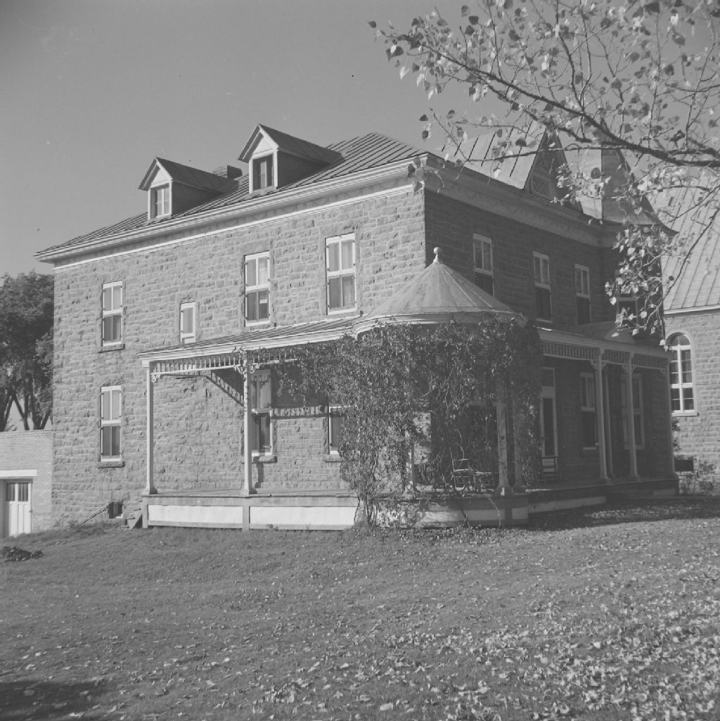Hemmingford, Huntingdon - Église - Bâtiment et croix, [Vers 1950], Archives nationales à Québec, Fonds ministère de la Culture et des Communications, (03Q,E6,S8,SS1,SSS486,D1877), Gérard Morisset.