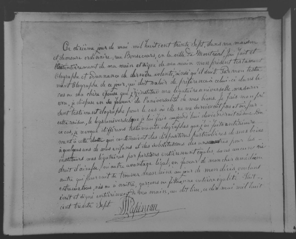 Montréal, Île de Montréal - Archives judiciaires - Testament de Louis-Joseph Papineau